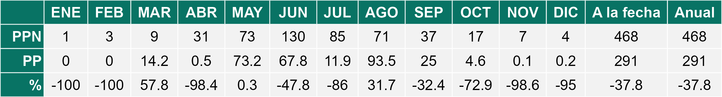 Considerando la precipitación normal para este período se puede interpretar que la Región presenta un déficit del 32% . Igual al del mes pasado.