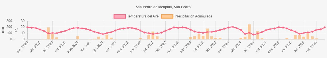 Datos de precipitaciones y temperatura en San Pedro, Melipilla