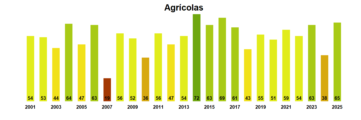 Afortunadamente, las bajas temperaturas de Junio y mayo favorecieron la acumulación de frío, por lo que en la zona no habría problemas para la fruticultura, sin perjuicio que la proyección para los próximos meses indicaría que especies con un requerimiento muy alto si tengan inconvenientes. Ambos factores (acumulación de frío anticipado y calor en agosto) deberían de asociarse a una aceleramiento en la fenología, por lo que es muy probable que se adelanten los hitos más relevantes, lo que se debe de considerar en los manejos agrícolas. También se debe de considerar que, aunque ha llovido menos de lo normal, el agua acumulada en la temporada sumada a las altas temperaturas, favorecen el crecimiento de la vegetación, pero de no haber más lluvias importantes, se agotarían las reservas de agua, provocando un decaimiento rápido de la vegetación.