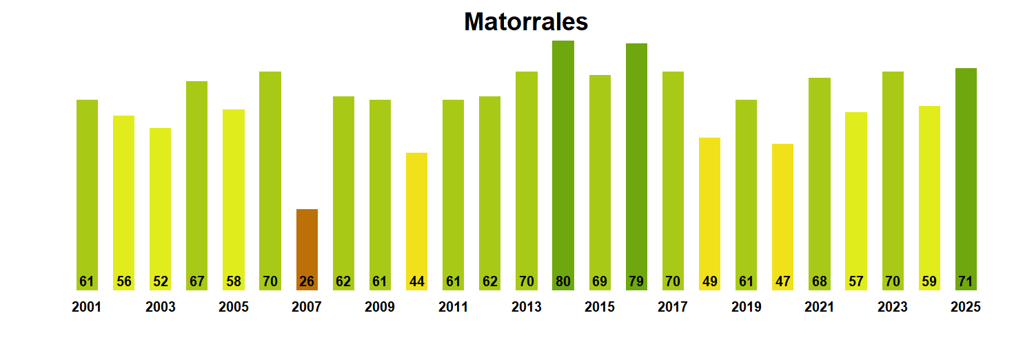 Figura 2. Valores promedio de VCI en Matorrales en la Región del Maule