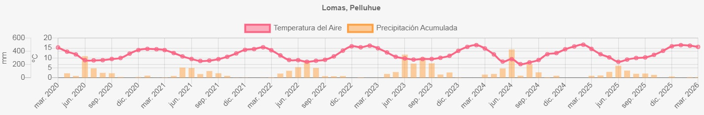 Datos de precipitaciones y temperatura en Lomas Pelluhue, Maule