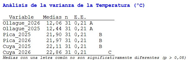 Figura 3.- Comparación de temperaturas medias del mes entre años en Cuya, Pica y Ollague.