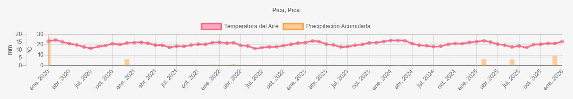 Temperaturas y precipitaciones desde 2020 a 2026 en Pica