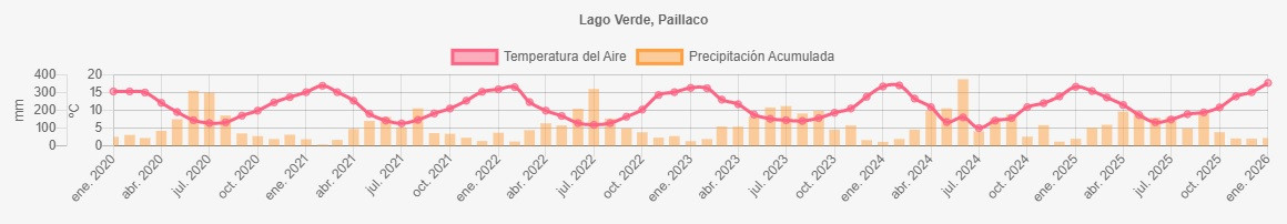 Temperaturas y precipitaciones desde 2020 a 2026 en Paillaco