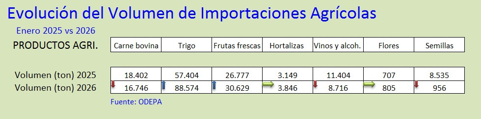 Figura 5.- Comparación de volumen y valor de importaciones agropecuarias del mes indicado entre